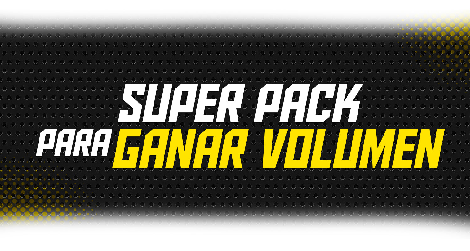 VOLUMEN PACK: Massiv 3,5kg + Creatina 500gr + Pre ultrain 300gr + Colageno 600gr + Shaker